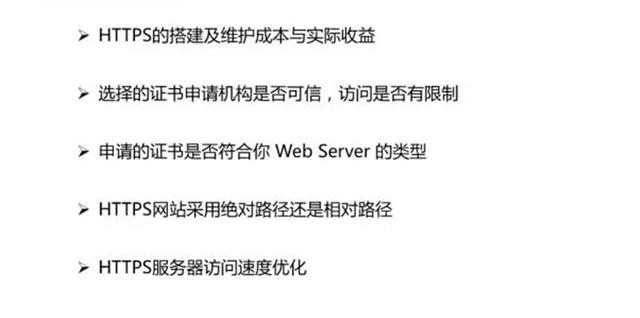 無論是做一個新的HTTPS站還是從HTTP轉(zhuǎn)成HTTPS的網(wǎng)站,都需要投入硬件、軟件、人力等新的成本,所以在未評估之前建議不要做;一旦做好,輕易不要關(guān)閉HTTPS網(wǎng)站倒退回HTTP,這種倒退行為很容易造成不利影響;選擇靠譜的證書申請機構(gòu):