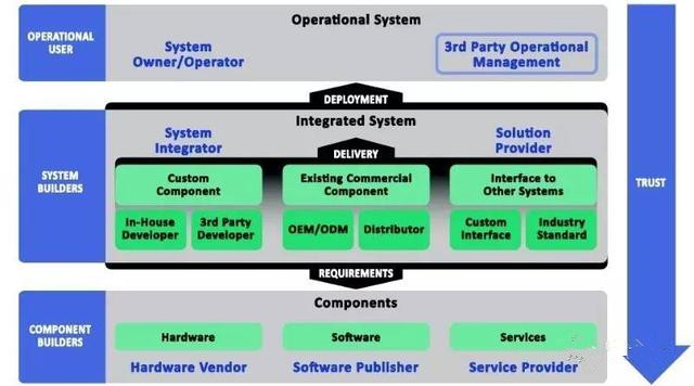 該框架從工業(yè)世界的3個角色看待安全:打造硬件和軟件的組件創(chuàng)建者,使用硬件和軟件來構(gòu)建解決方案的系統(tǒng)創(chuàng)建者,以及解決方案和系統(tǒng)的操作用戶。工業(yè)用戶需要解決整個系統(tǒng)的可信度問題。
