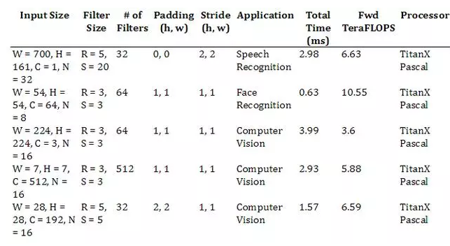 有很多計算卷積的技術(shù)對不同大小的過濾器和圖像來說都是很好的選擇,包括:direct approaches、基于矩陣相乘的方法、基于 FFT 的方法以及基于 Winograd 的方法。在該基準的第一代版本,我們沒考慮不同方法的準確率,因為普遍共識是 32 位浮點計算對它們每個方法而言都是足夠準確的。