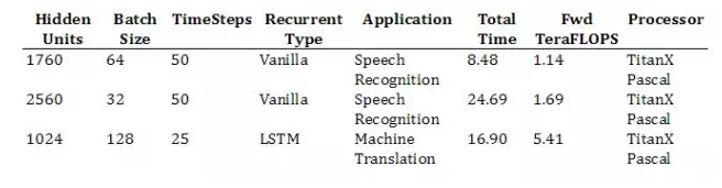 在一個時間步驟內(nèi)和跨序列的時間步驟上,這些因素會導(dǎo)致很多優(yōu)化的可能性,因此測定運算的原始性能并不一定能夠代表整個循環(huán)層的的性能。在這樣的基準上,我們僅關(guān)注一個循環(huán)層,即使還存在其它更多的優(yōu)化機會(如果考慮它們的層疊(stack))。
