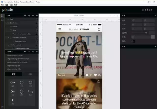 Pixate是圖層類交互原型軟件。優(yōu)點(diǎn):可交互,共享性強(qiáng),和Sketch結(jié)合相對(duì)高,同時(shí)對(duì)Google Material Design的支持比較好,有許多MD相關(guān)預(yù)設(shè)。Pixate的缺點(diǎn)是沒有時(shí)間線,層級(jí)管理不是很明確,圖層一多就會(huì)非常的繁雜。