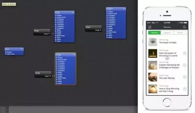 類似可視化編程的模式展示,所有操作幾乎只需要拖動(dòng)連接即可,極大提高了工作的效率,操作起來也十分方便快速,因此也被設(shè)計(jì)師成為“動(dòng)效神器”。