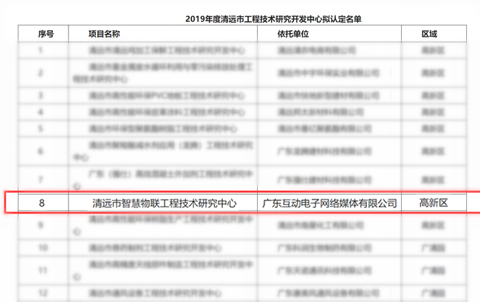 近日從,清遠(yuǎn)市科技局正式公布“關(guān)于2019年度擬認(rèn)定清遠(yuǎn)市工程技術(shù)研究開(kāi)發(fā)中心名單”中悉知,我司申報(bào)的清遠(yuǎn)市智慧物聯(lián)工程技術(shù)研究中心通過(guò)正式認(rèn)定!